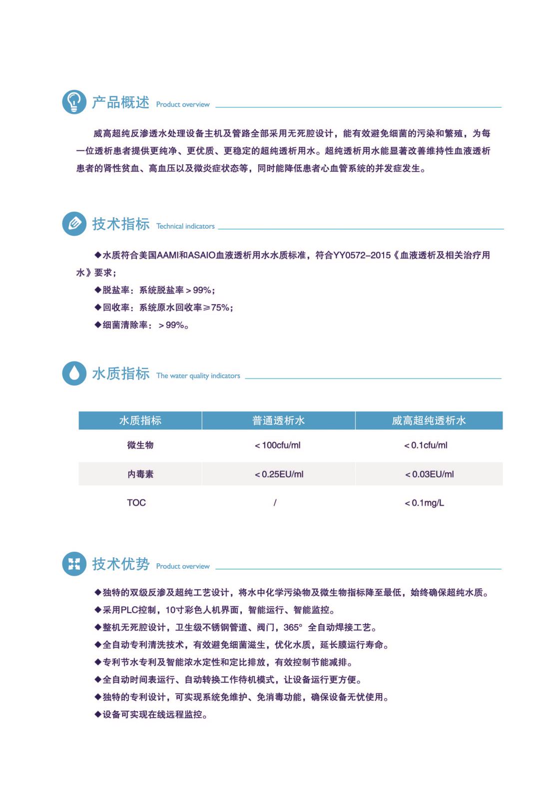1、產(chǎn)水水質(zhì)符合美國(guó)AAMI和ASAIO血液透析用水水質(zhì)標(biāo)準(zhǔn),符合YY0572-2015《血液透析及相關(guān)治療用水》要求;